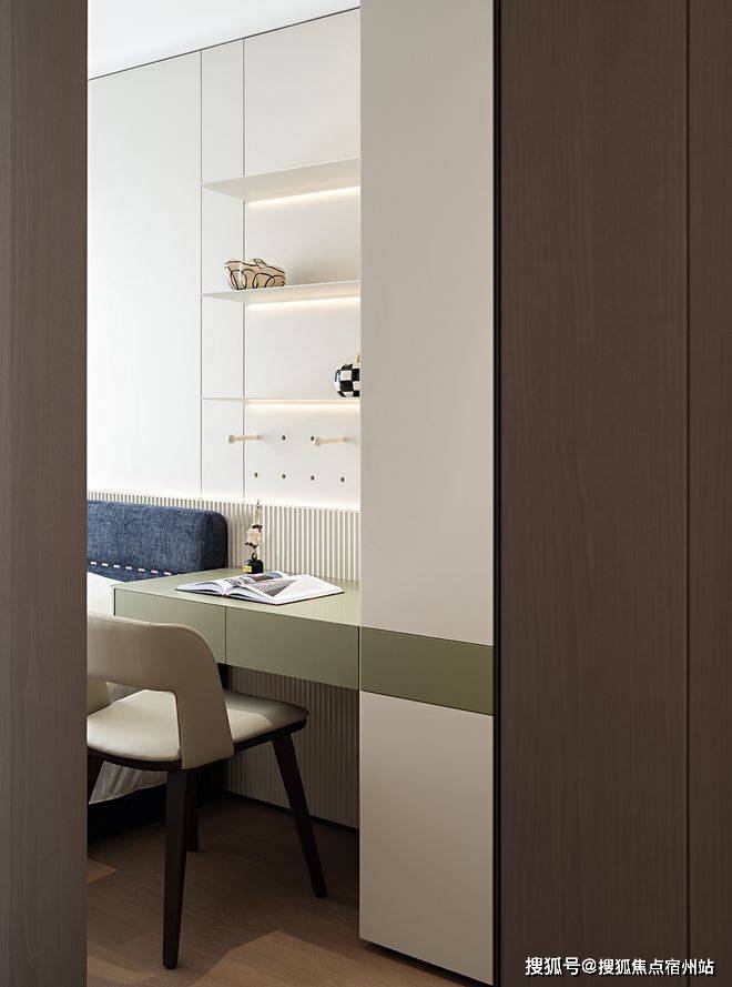 真正的奢侈,在于那些需要细看才能发现的用心。墙面木饰面采用上下异纹设计,嵌入纤细金属线条,于微妙起伏中塑造立体层次。