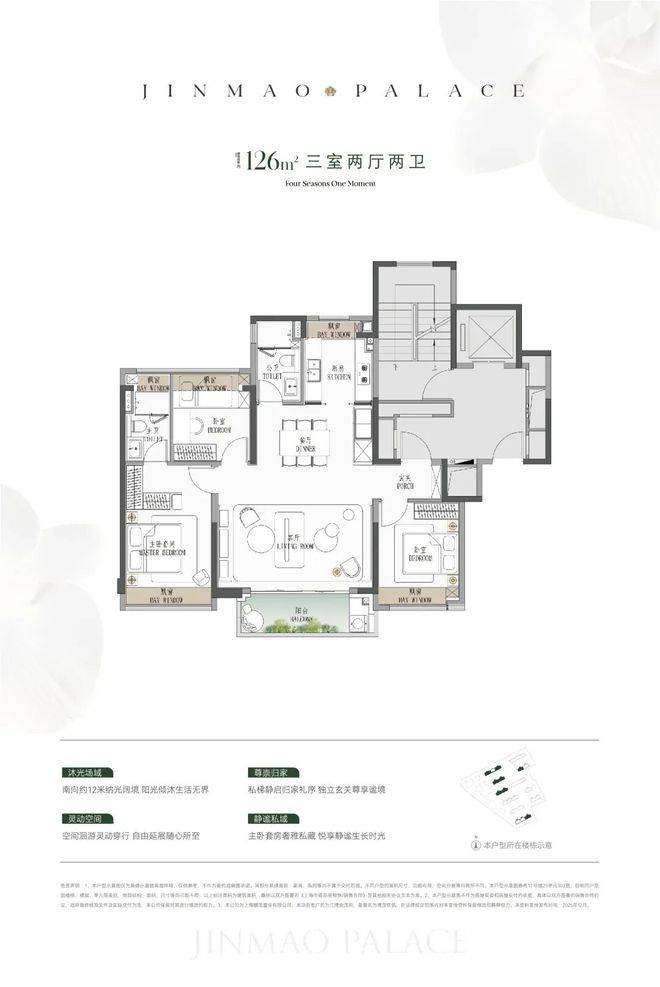 ● 建面约190㎡4房:楼王位置的顶奢大平层,同价位段在杨浦只能买到约120㎡3房!