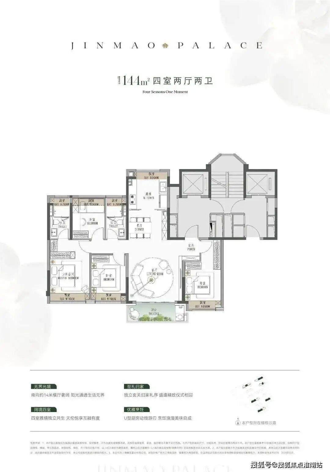 ● 建面约190㎡4房:楼王位置的顶奢大平层,同价位段在杨浦只能买到约120㎡3房!