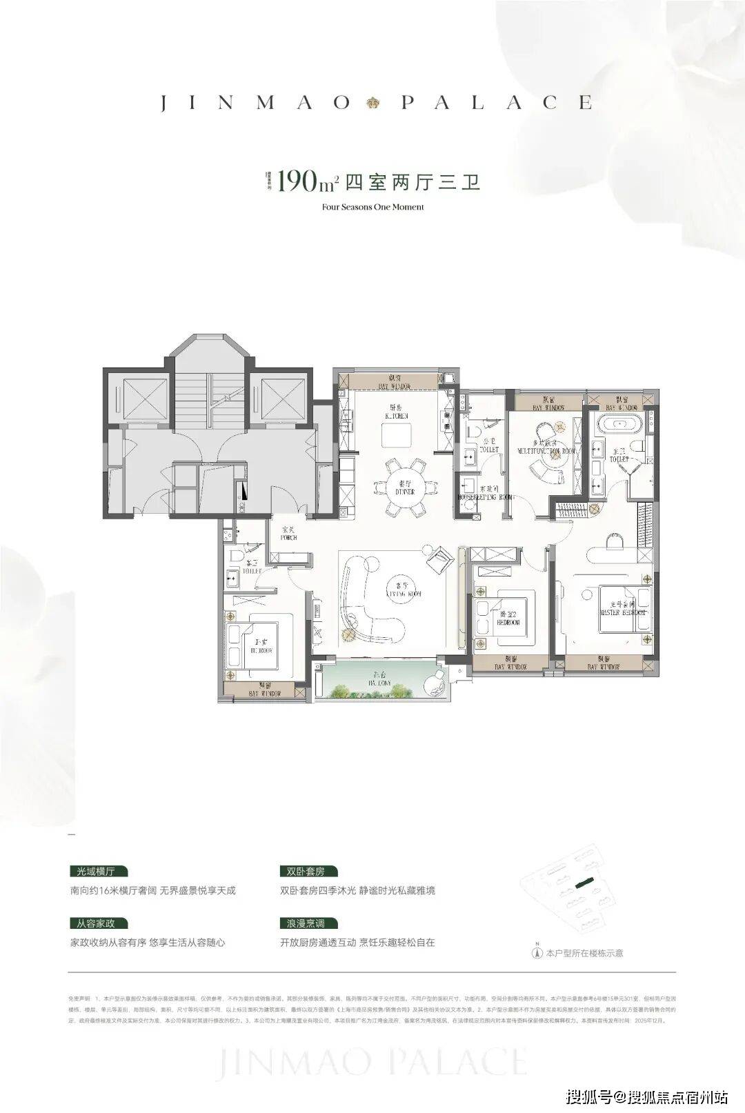● 建面约190㎡4房:楼王位置的顶奢大平层,同价位段在杨浦只能买到约120㎡3房!